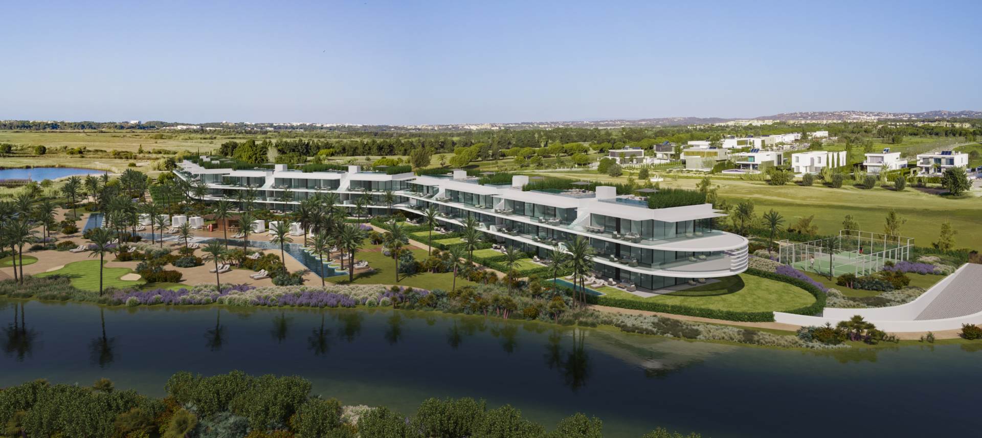 A new three bedroom apartment with astounding views over the pool and lake in the Monte Rei Golf and Country…